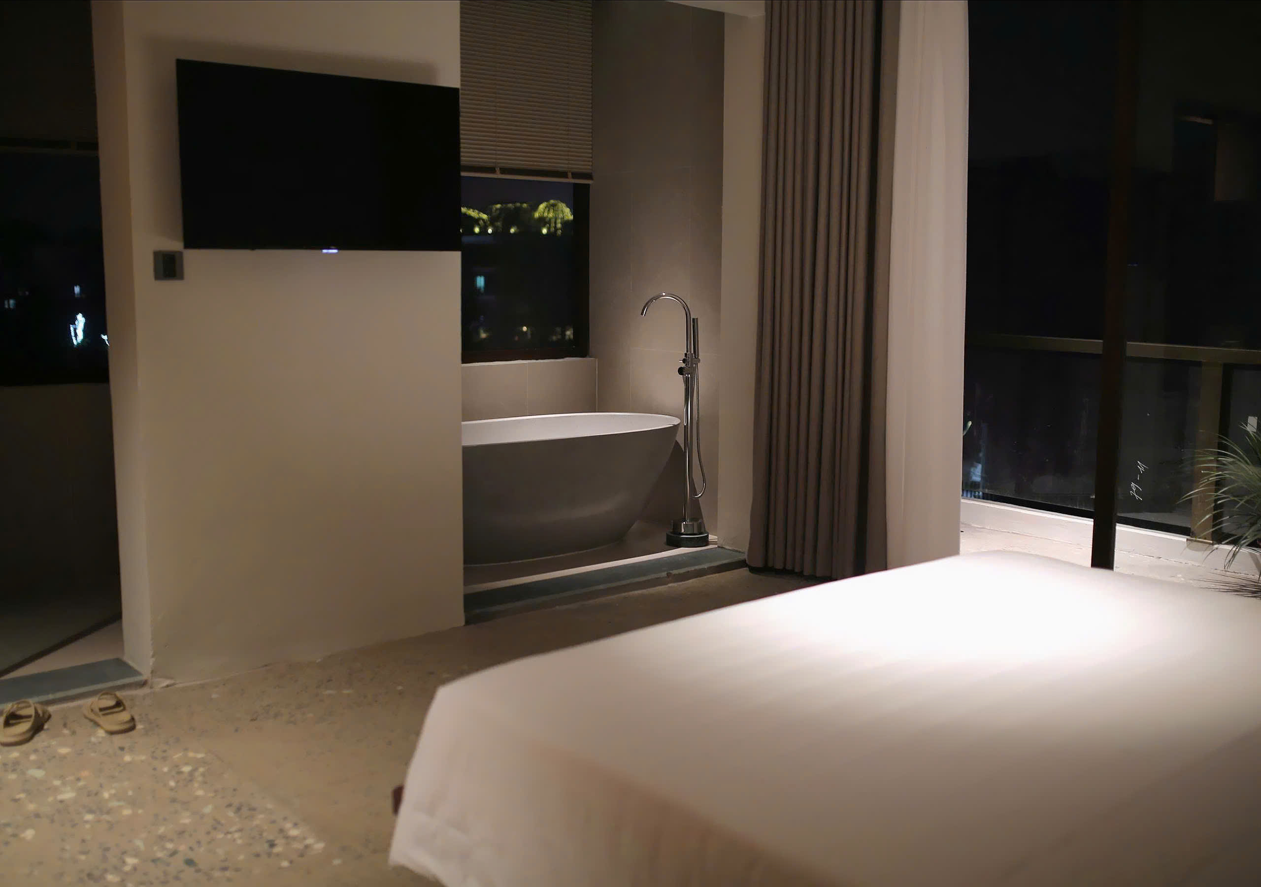 - Phòng gia đình rộng rãi được trang bị máy điều hòa, tường cách âm, sân hiên nhìn ra hồ cũng như phòng tắm riêng với vòi sen.